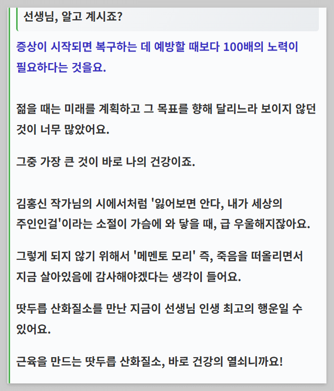 - ☐ 운동·걷기 후 회복이 늦어졌다